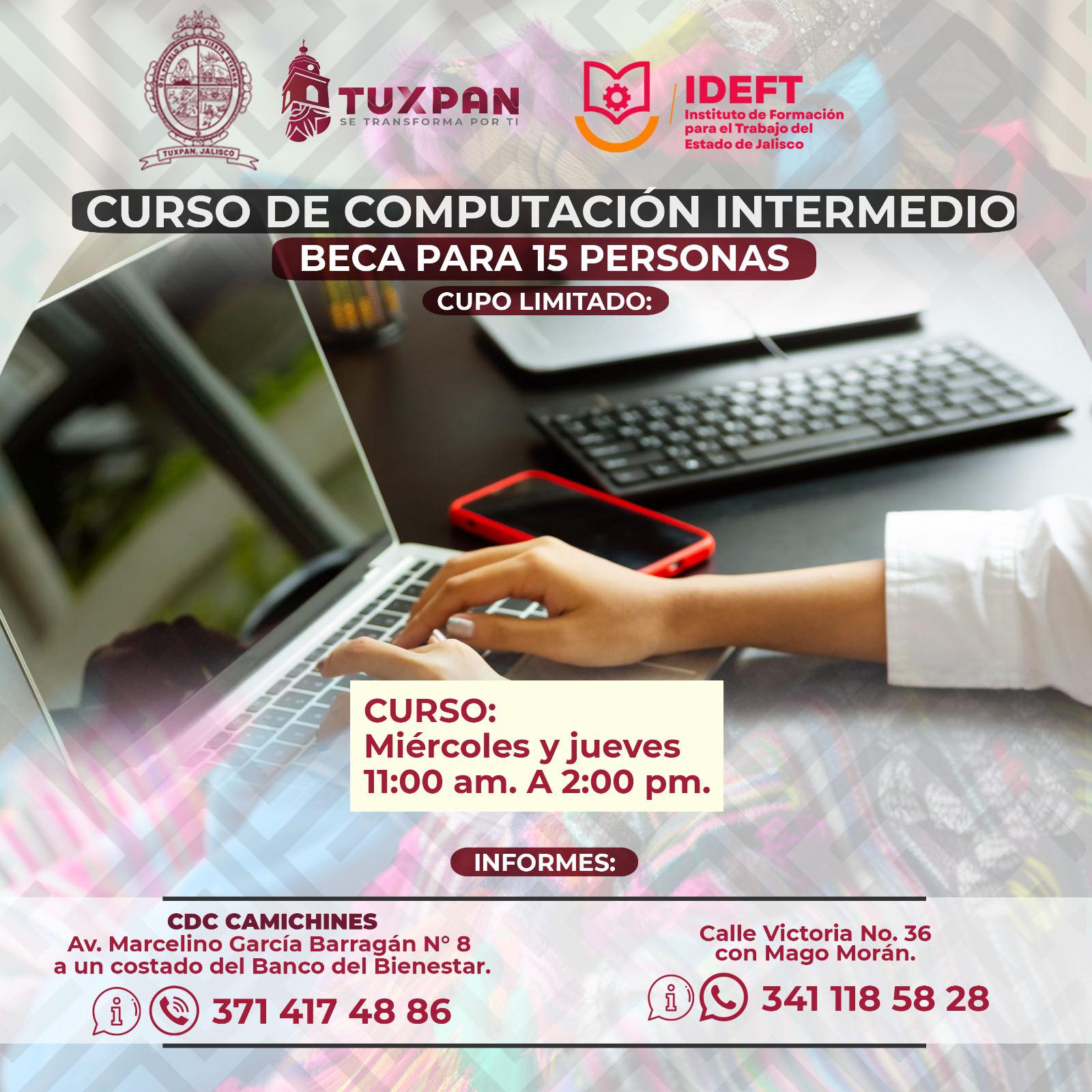El Gobierno Municipal de Tuxpan, en coordinación con el IDEFT, te invita al Curso de Computación Intermedio, con beca GRATIS para 15 personas.
