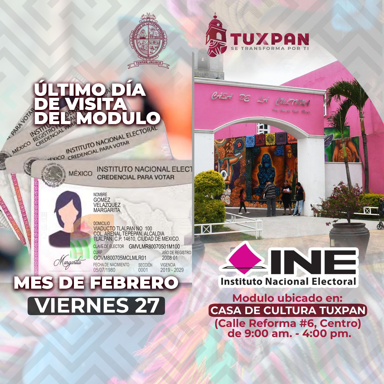 Este viernes 27 de febrero será el último día para realizar tus trámites en el módulo del Instituto Nacional Electoral (INE) en nuestro municipio. Ubicación: Casa […]