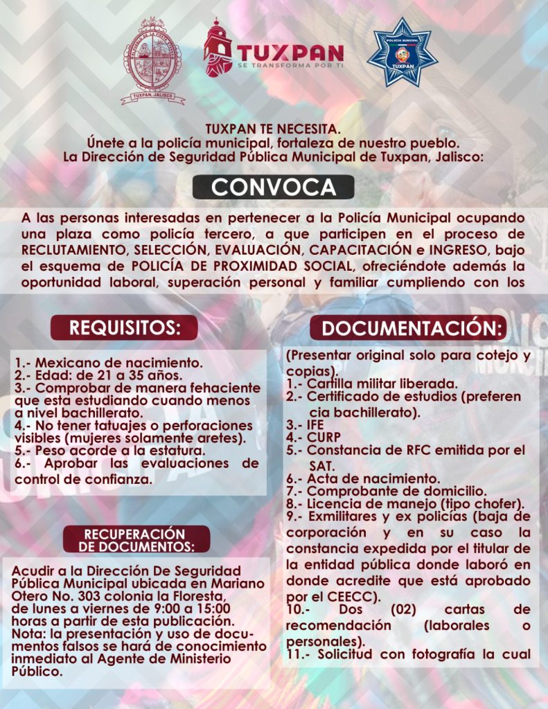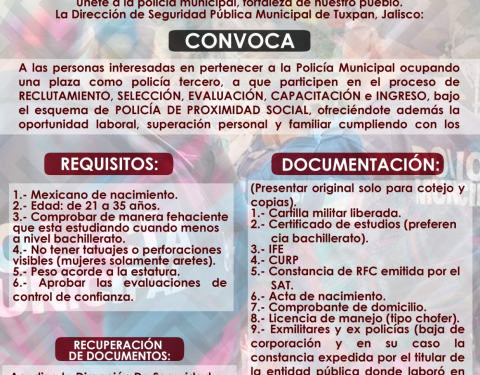 ¡TUXPAN TE NECESITA!  Únete a la Policía Municipal, fortaleza de nuestro pueblo.La Dirección de Seguridad Pública Municipal de Tuxpan, Jalisco, convoca a todas las personas interesadas […]