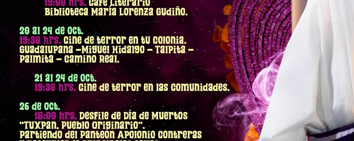 Del 17 de octubre al 3 de noviembre, Tuxpan vive sus tradiciones con una gran variedad de actividades culturales, artísticas y comunitarias para celebrar el Día de Muertos.